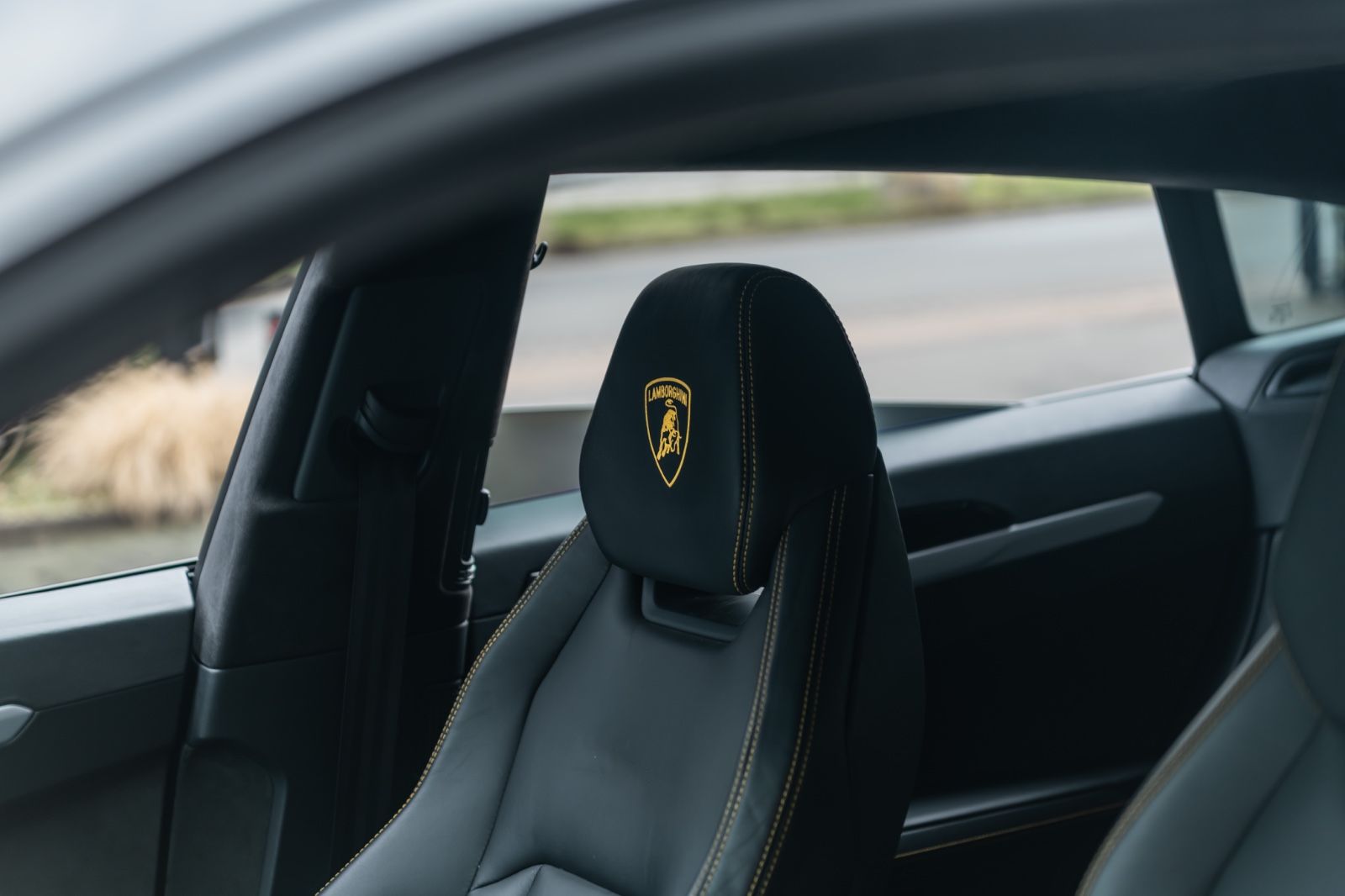 Lamborghini-Schild in Kopfstützen in Giallo